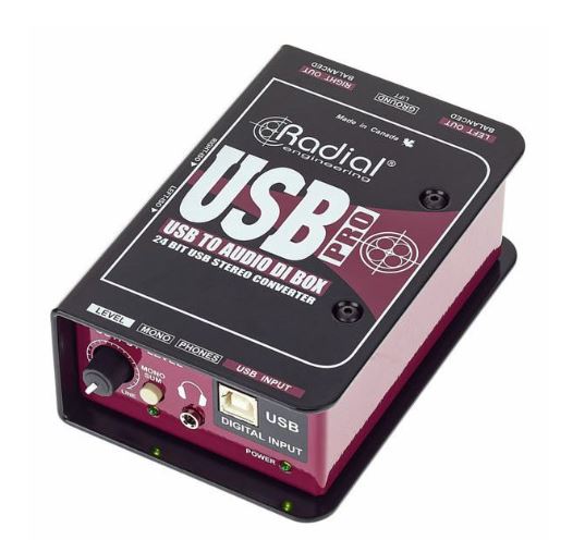 Le Radial USB‑Pro est un convertisseur / DI stéréo conçu pour relier facilement un ordinateur à un système audio professionnel, sans bruit, sans drivers compliqués et avec une latence minimale. Il fonctionne en plug-and-play, automatiquement reconnu comme interface audio sur macOS et Windows, et supporte la lecture jusqu’à 24 bits / 96 kHz.