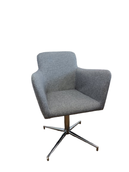 La structure de l’assise repose sur une coque robuste généreusement rembourrée, revêtue d’un tissu résistant aux frottements. Le dossier mi-hauteur et les accoudoirs évasés ont été étudiés pour s’adapter à toutes les morphologies, garantissant une posture naturelle. Le piètement en acier chromé, avec sa forme en étoile, assure non seulement une grande robustesse mais également une élégance visuelle qui rehausse le standing de votre salle.
