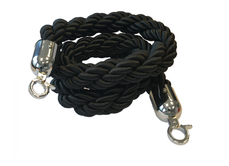 Pour vos événements où le luxe rime avec sobriété, choisir les cordes noires pour potelets est le choix de la distinction absolue. Contrairement à la corde rouge traditionnelle, très associée au cinéma, la corde noire apporte une touche de modernité et de mystère. Elle est particulièrement appréciée dans les environnements aux designs épurés, les showrooms automobiles ou les galeries d’art où elle délimite l’espace sans attirer l’œil de manière excessive, laissant toute la place au sujet exposé ou à l’architecture du lieu.