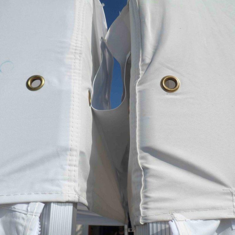 L’installation a été pensée pour la réactivité des équipes de montage sur le terrain. Grâce à ses fixations intégrées, elle s’adapte à la majorité des profilés de tonnelles professionnelles du marché. Elle permet de créer de véritables couloirs de circulation ou de grandes salles de réception éphémères tout en maintenant une esthétique soignée et une étanchéité rigoureuse. C’est l’investissement indispensable pour sécuriser vos événements extérieurs et garantir que vos buffets, zones régie ou pistes de danse restent parfaitement au sec, quelles que soient les conditions météorologiques.