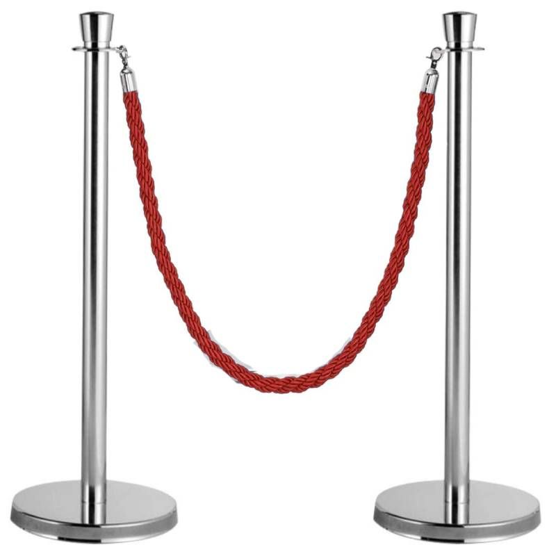 Lot potelets chromes + cordes rouges