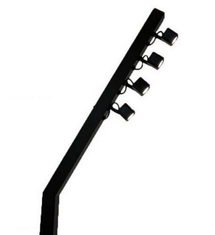 Mât d’éclairage autonome sur batterie avec 4 projecteurs LED orientables de 5W chacun (angle 25°). Température de couleur fixe 3000K blanc chaud avec indice de rendu des couleurs CRI>90. Bras pivotant robuste réglable sur 6 positions fixes. Hauteur modulable grâce aux tubes d’extension de 1m inclus (tubes de 50cm disponibles en option). Base lourde de stabilité 45x37cm fournie. Interface utilisateur simple : 3 boutons tactiles et écran LCD affichant le temps de batterie restant. Contrôle DMX sans fil intégré avec sortie XLR (fonctionne comme récepteur W-DMX) ou pilotage DMX filaire via XLR in/out (1 canal gradation). Montage/démontage ultra-rapide sans aucun outil. Chargeur de batterie interne contrôlé par processeur avec entrée/sortie PowerCon IP65. Poids total : 25kg. Consommation : 69W. Alimentation secteur 100-240V AC 50/60Hz. Construction robuste qualité location avec électronique encapsulée et ouvertures d’évacuation pour liquides renversés accidentellement.