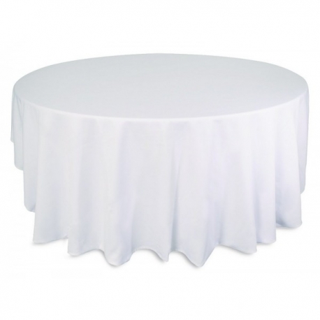 Cette nappe ronde de 280 cm est la pièce maîtresse pour les professionnels de l’événementiel recherchant un aspect solennel et luxueux. Son diamètre est spécifiquement étudié pour offrir une retombée maximale : sur une table de 180 cm de diamètre, elle descend à seulement 10 cm du sol, tandis qu’elle offre un nappage intégral (tombant au sol) sur une table de 150 cm ou 160 cm. Le blanc éclatant du tissu assure une base neutre et lumineuse qui sublime l’art de la table et les compositions florales.