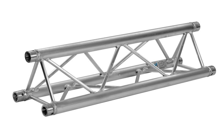 La poutre de structure carrée de 3,00 m représente le segment le plus long de la gamme standard, conçu pour optimiser la stabilité et la rapidité d’installation. En couvrant trois mètres d’un seul tenant, elle limite drastiquement le nombre de jonctions, ce qui réduit les points de faiblesse potentiels et assure une linéarité parfaite de vos ponts d’éclairage. Sa conception robuste, basée sur des tubes porteurs de 50 mm, permet de suspendre des charges significatives (écrans LED, ponts de face, sonorisation) sur de larges ouvertures scéniques.