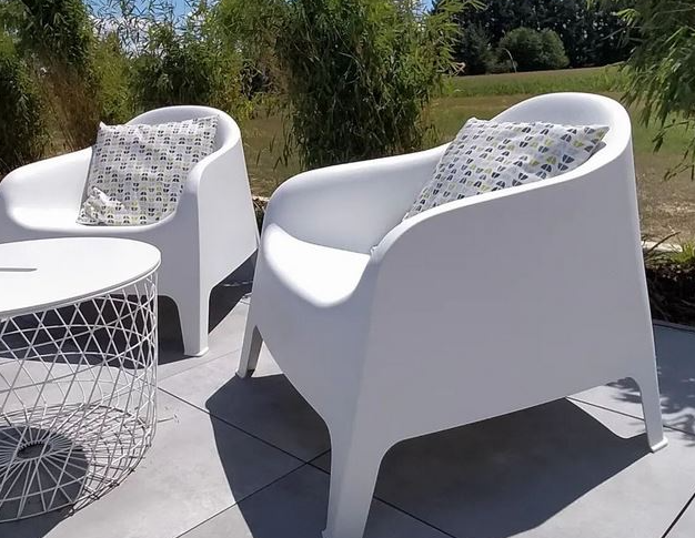 Ce pack de mobilier se compose précisément de deux fauteuils d’assise basse, spécialement étudiés pour offrir une posture de détente prolongée. Chaque fauteuil est accompagné de ses coussins d’assise et de dossier, dotés d’un revêtement textile de qualité, doux au toucher et résistant. La densité du rembourrage a été choisie pour offrir un maintien souple, garantissant que vos convives se sentent parfaitement installés, que ce soit pour un cocktail de quelques heures ou une soirée entière.
