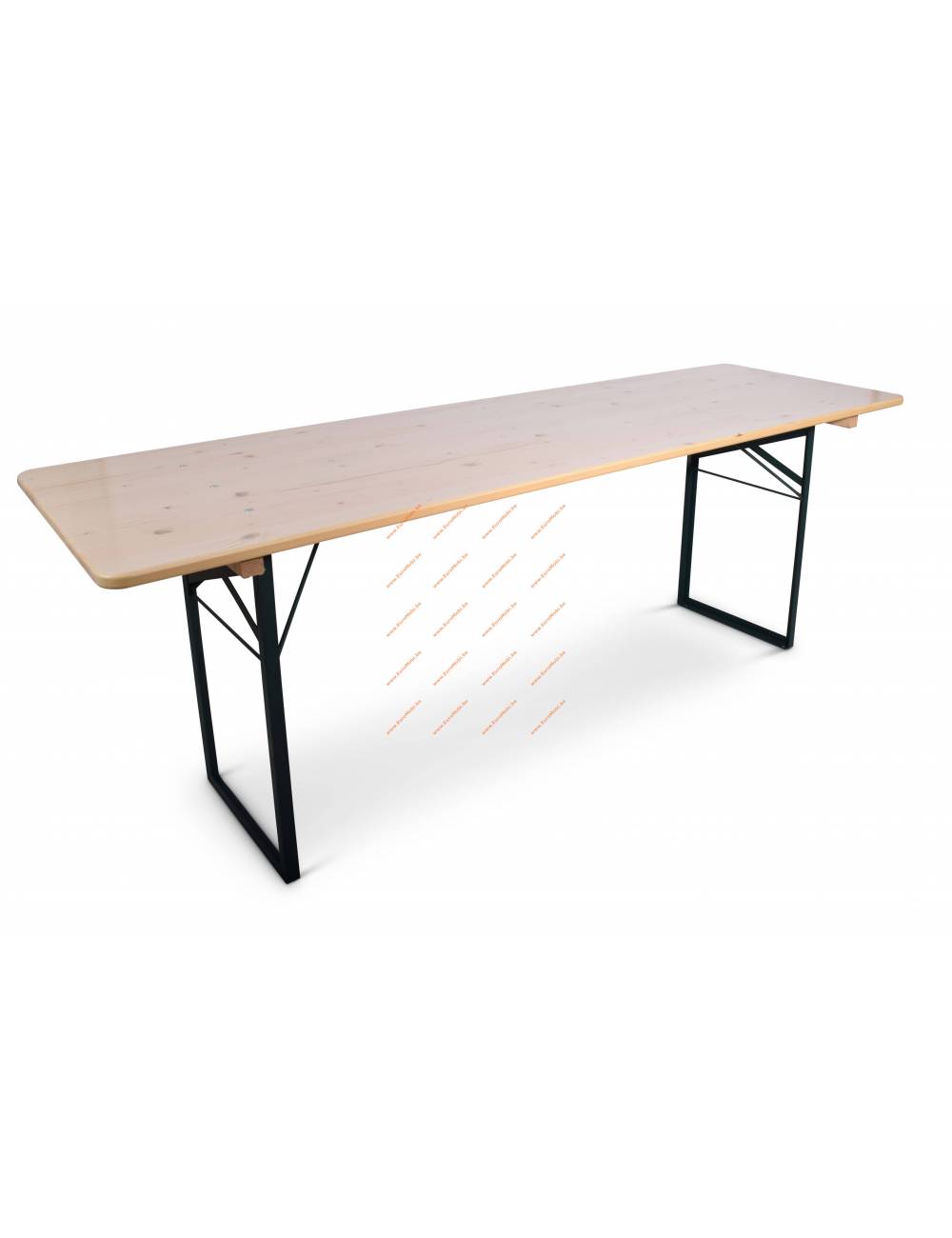 La robustesse est le maître-mot de ce mobilier : le plateau en bois résineux est traité avec un vernis haute résistance aux UV et aux rayures, tandis que le châssis en acier assure une stabilité parfaite même sur des sols irréguliers (herbe, graviers). Le système de verrouillage des pieds est conçu pour être manipulé des centaines de fois sans faillir, garantissant un montage en quelques secondes seulement. Une fois repliées, ces tables sont extrêmement plates, ce qui permet d’en transporter et d’en stocker un grand nombre dans un espace réduit.